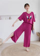 Shocking Pink Let Me Sleep V Neck Quarter Sleeves with Cut Style Pajama